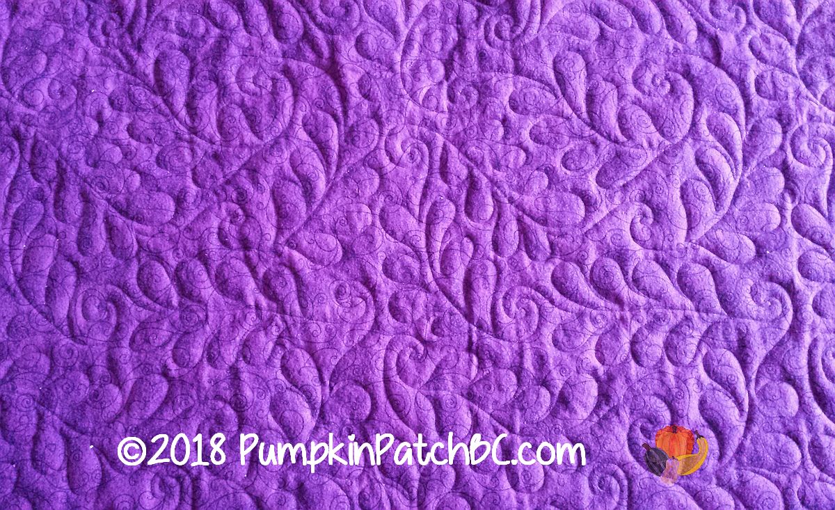 Diesen Quilt hat Mary aus Batikstoffen genäht. Geduldig hat sie über Monate jede Menge kleine und kleinste Teile zusammengenäht. Für den äußeren Rand hat sie das gleiche Muster verwendet, aber die hellen und dunklen Stoffe ausgetauscht. Das Ergebnis gefällt mir außerordentlich gut. Als Quiltmuster hat Mary “Feathered Curls” gewählt.