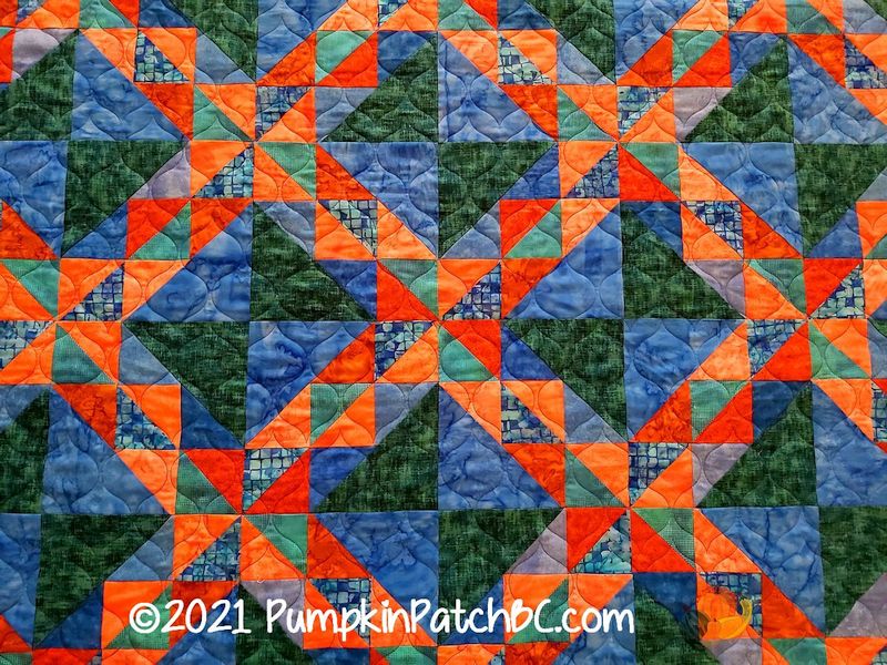 What an interesting quilt. The colors are so unusual yet very appealing.