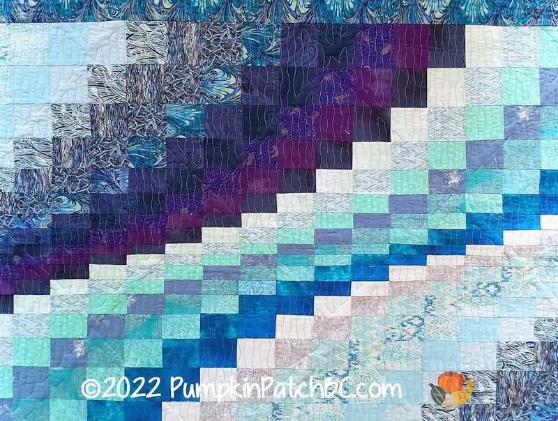 Darlene, the Bargello queen among my customers, dropped off another Dancing Wave Bargello to be quilted. Most of the time her quilts are huge and get to the limits of my frame, and every time she swears she will never do another one as big. We get a good chuckle out of that because we both know it is just a question of time before she’ll be back with another one. This one is a gift for her daughter, and the daughter requested the pattern “Ripples” that I had used on another one of Darlene’s quilts before.