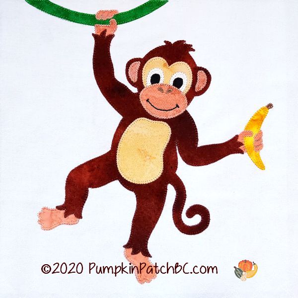 BOM 2021, Quilt featuring twelve appliquéd monkeys