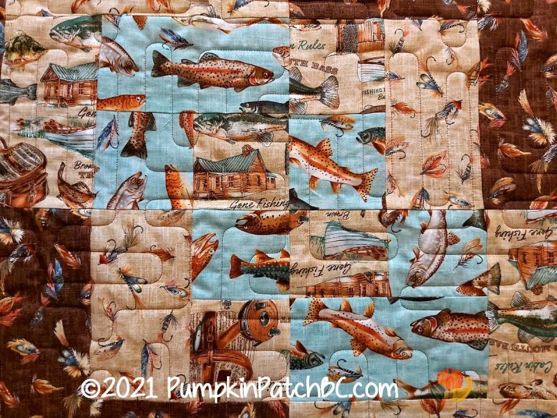 I like to find backing fabrics for my projects that match the theme of the quilt. That doesn’t always work out but I was lucky and found some cute penguin fabric for the back of my Penguin Promenade sample quilt. I ordered it online and didn’t even notice it was flannel. I usually go for flat cotton but didn’t mind a flannel backing. What I did mind though was the leftovers. I do not have a flannel scraps collection, and I definitely didn’t want to start one. So I cut all the remaining fabric into the largest possible squares and contacted the We Care committee of my local guild. The guild has a huge stash of fabric donations for quilts, and I was sure there would be some flannel pieces that would work with my little penguins. The ladies promptly delivered flannel fabrics for me to use, and Gail even donated a super cute penguin flannel from her own stash for the backing.