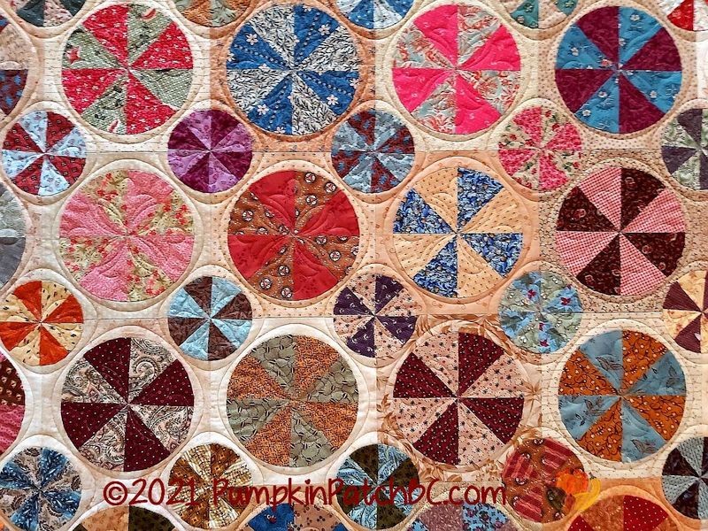 Dieser Quilt ist definitiv einer der schönsten, die ich je für jemanden gequiltet habe. Er wurde von Penny genäht als Weihnachtsgeschenk für ihre Tochter… es handelt sich hierbei um eine andere Penny, nicht die Dame, die den Batik Leaves Quilt genäht hat, über den ich letzte Woche geschrieben habe. Es ist ein King Size Grandmother’s Flower Garden Quilt (ca. 2,50 m x 2,50 m), und jede Blume besteht aus sieben verschiedenen Stoffen. Im grünen Hintergrund wiederholen sich einige Stoffe, aber jeder Stoff, der für eine Blume verwendet wurde, kommt nur einmal im gesamten Quilt vor. Er ist komplett mit der Hand genäht, und dafür hat Penny insgesamt (mit Pausen) fünf Jahre gebraucht. Sie hat in den 80er Jahren mit dem Quilten angefangen und viele Stoffe gesammelt, und ihre Freunde haben ihr auch immer wieder Stöffchen für die Blumen zukommen lassen. Wie sie ihn gequiltet haben wollte, wusste sie nicht so genau, sie bat mich nur, die “Blumen wie Blumen aussehen zu lassen”. Das habe ich gemacht, und ich war selbst erstaunt, wie gut das wirkt. Diesen Quilt zu quilten hat riesigen Spaß gemacht, und die vielen verschiedenen Stoffe machten es sehr abwechslungsreich, es gab immer wieder etwas Neues zu entdecken. Das wird eine tolle Weihnachtsüberraschung für ihre Tochter.