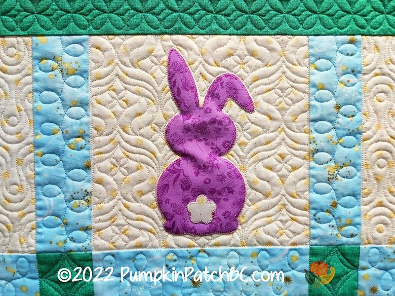 When I started playing around with bunny ideas last year for the new BOM, I got sidetracked and came up with a different bunny pattern. I quite liked it even though it wasn’t suitable at all for a BOM. I have been working on it on and off, and the pattern is now ready to be released. The Bunny Buddies are simple shapes, so if my usual tiny pieces are not your cup of tea or if you have never tried your hands at fusible appliqué, this is a great pattern to start with. You can even substitute the bunny tails for circles instead of the flower shapes that I used. I also created a matching pillow, I just love the bunny silhouettes, and especially the little guy with the floppy ear.